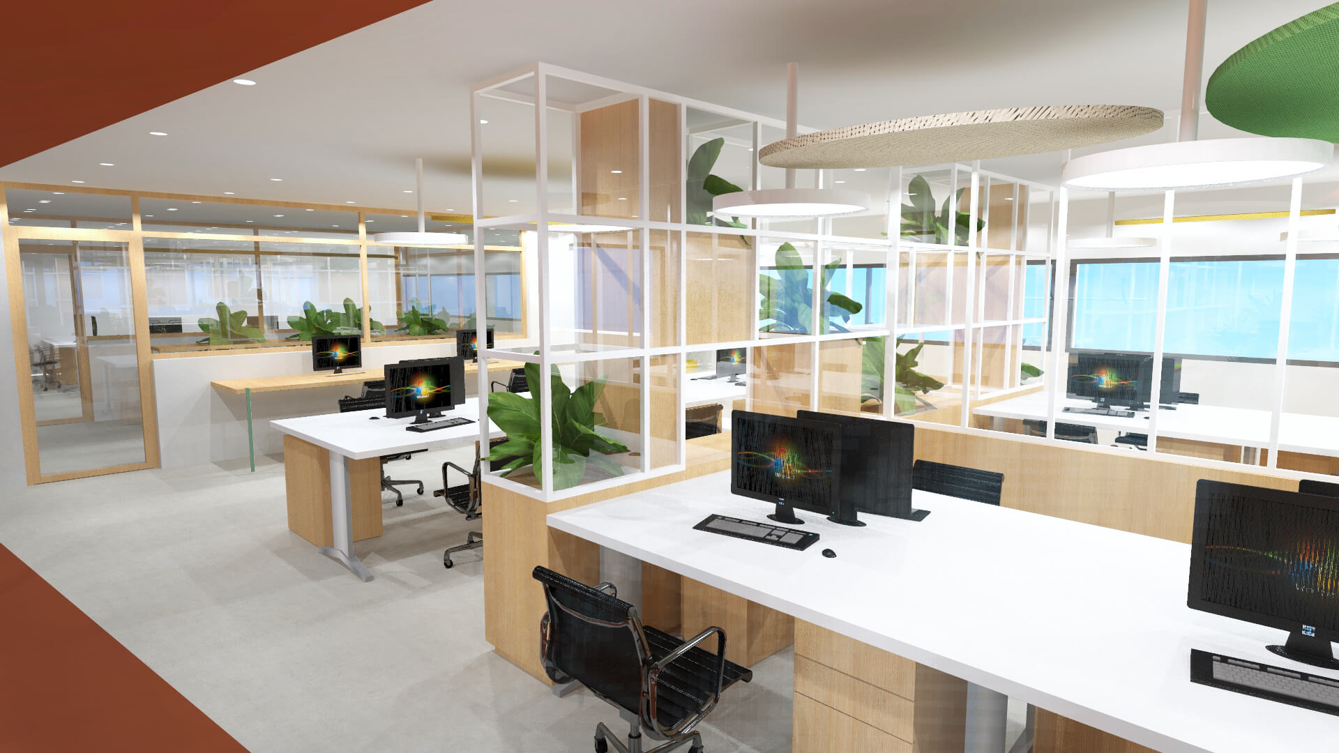 La commande du client était de cloisonner sans cloisonner, de cacher sans trop cacher et de rester aérien dans l’architecture. De plus, il était primordial d’offrir aux collaborateurs un cadre de travail sain et agréable à vivre.